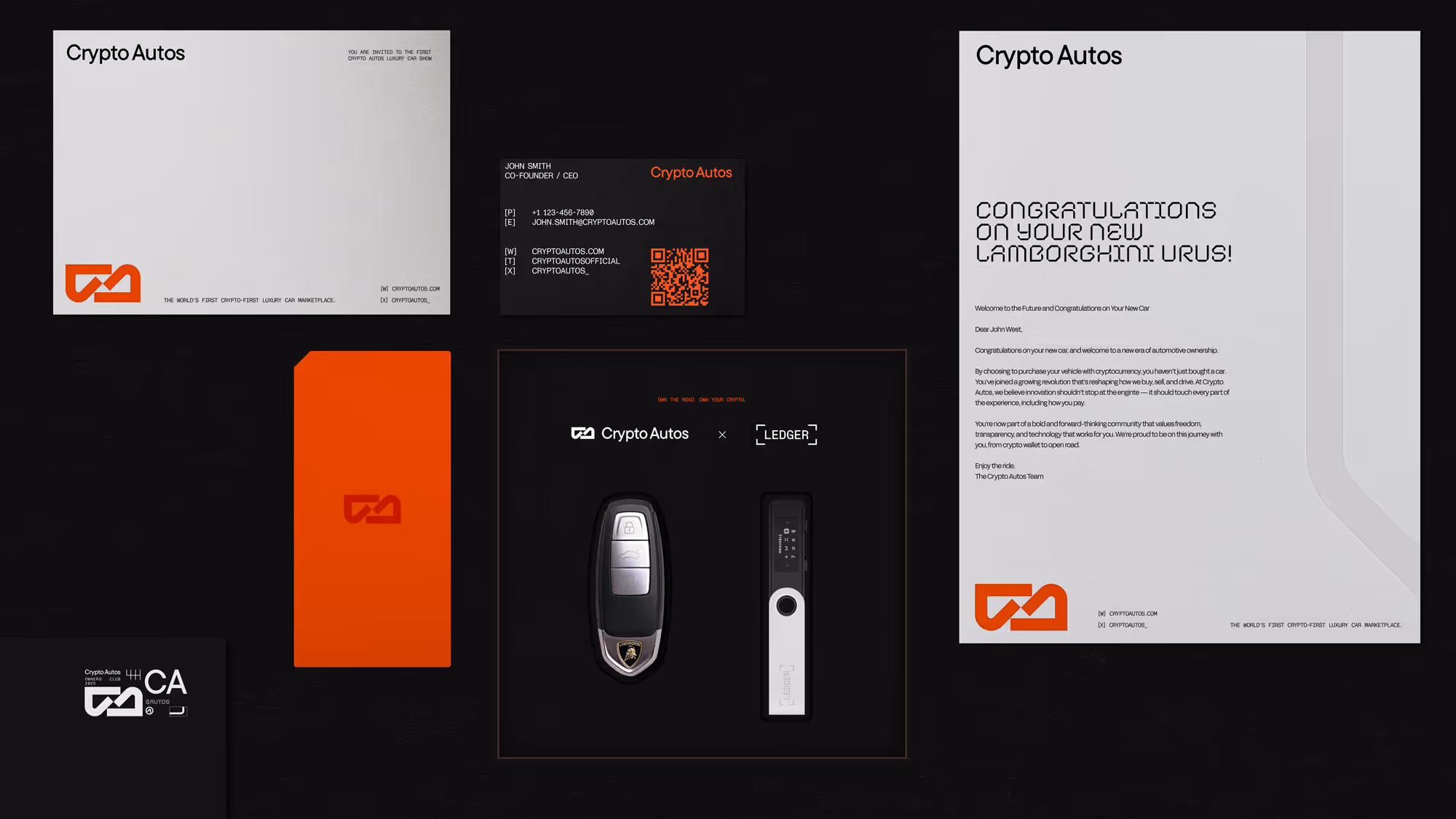 In a space where crypto brands often feel technical and cold, and luxury automotive brands feel traditional and exclusive, Crypto Autos needed to bridge both worlds. The identity needed flex and range to work across all manner of mediums, from social and print assets to web experiences, car wraps and live events.