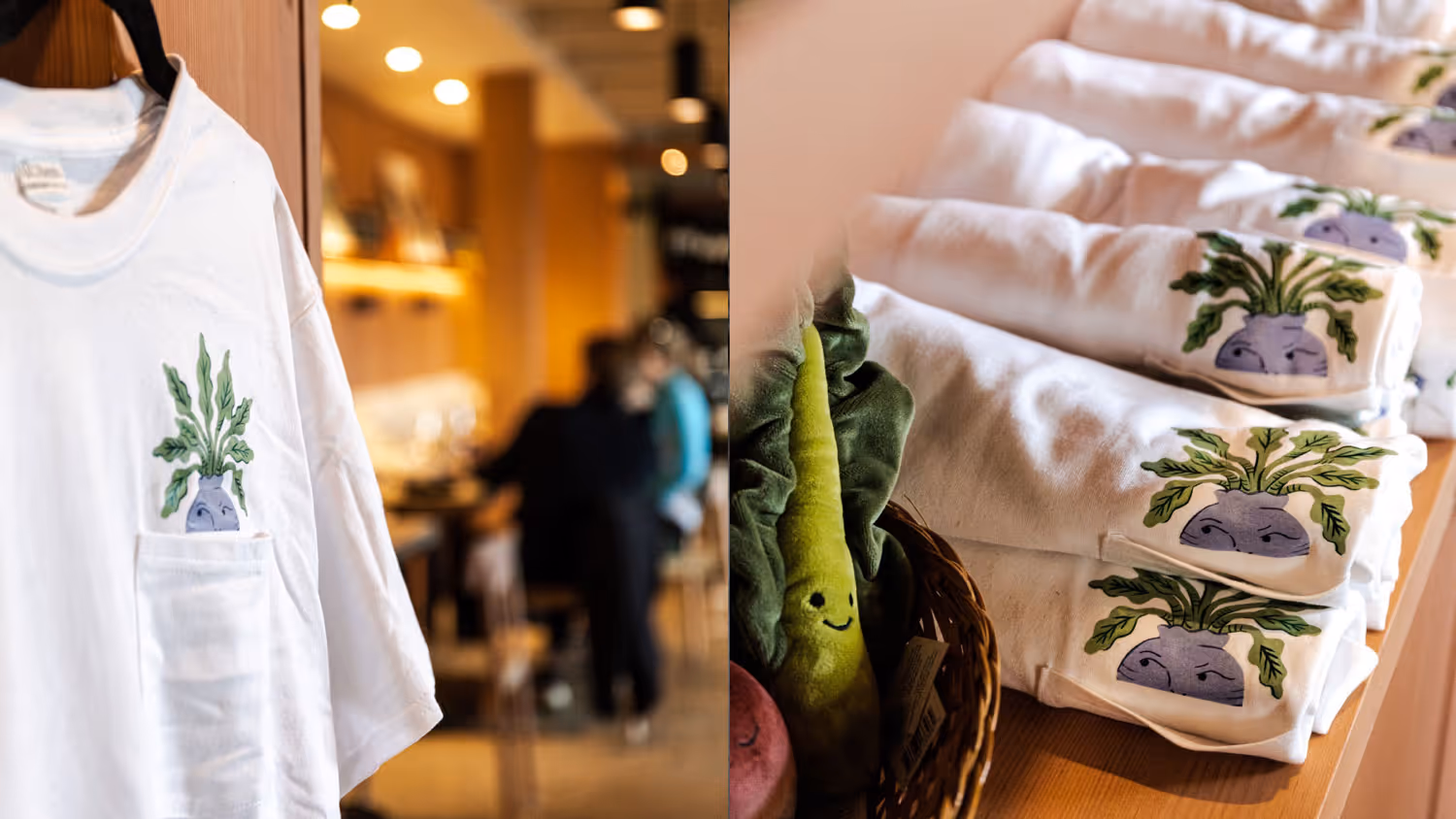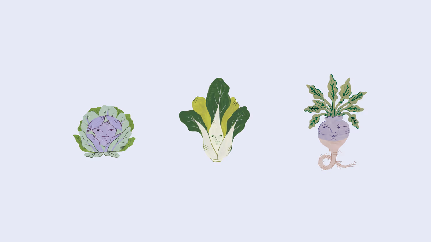 Working with illustrator Estée Preda, we personified the vegetables to bring a playful and whimsical quality to the brand, capturing their philosophy that healthy food doesn't need to be precious. The identity extends beyond the menu and collateral into the physical space itself. Even the restaurant signage drew from the layered structure of a cabbage, constructed from three stacked layers of wood that create depth and dimension.