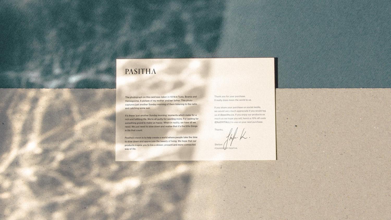 In a market saturated by brands, or really just labels, that either feel cold and medicinal or too earthy and boho, we position Pasitha as a lifestyle brand born from the realisation that these are products that should be part of the aesthetic of your space, not just oils to be used and put away again.